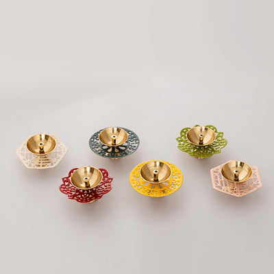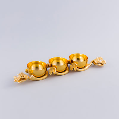 A modernized version that is still devoid of traditional value couldn't look more perfect than this set. A perfect set to accommodate amongst the living room decor, these have the quality to accentuate the corners if lit at the corners. A careful presentation of these on the racks, on coffee tables the corners with the items of the moment in the center, and on a mantle that is a part of the living room wall can amp up the ambiance with such an accumulation of small pieces. These are brass made with different colors of enameled diyas that share similarities and distinctness at the same time.