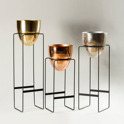 Carrying the office or professional work home? It's okay for those who work from home, but it's hard for those who carry work to home and be at it with the same determination. It is then a lot of issues that need to be fixed in an at-office way, like creating or replicating the ambiance up to an extent. One of those issues can be fixed by these large-standing planters with a blend of steel and nickel with a gold coating finish. These are of corporate design with a level of architectural and geometrical precision to them. Plant some long twigs, lanky-leaved, or upright structured plants to bring in the office look.