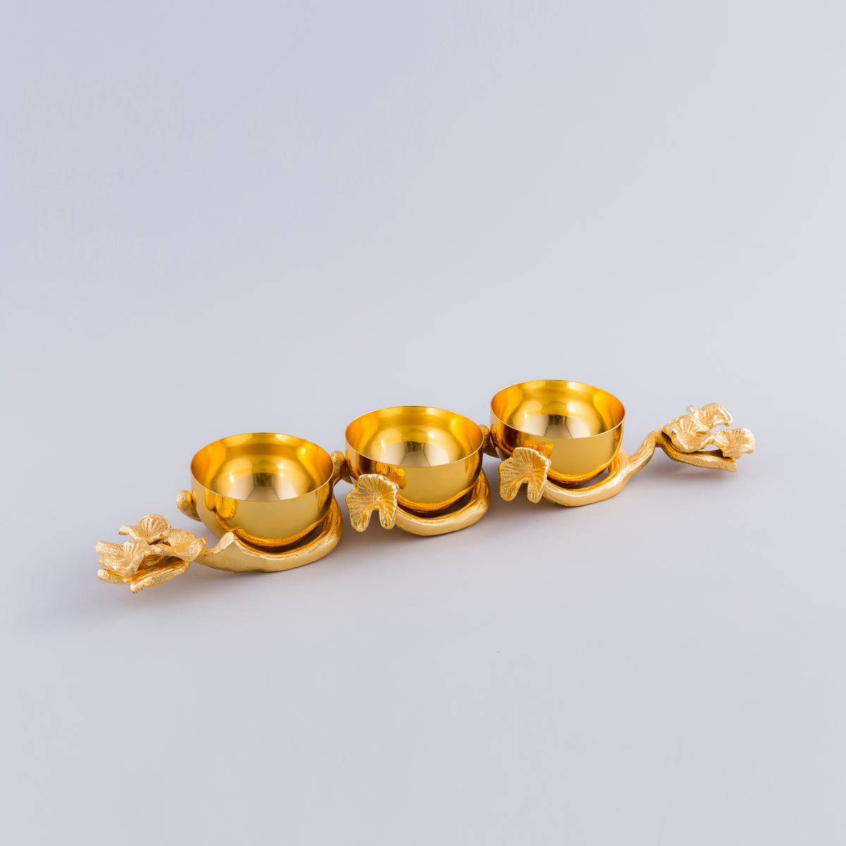Introducing our Golden Three-in-One Bowl, a luxurious and versatile addition to your tabletop decor. Crafted with elegance in mind, this exquisite bowl seamlessly blends style with functionality. Its stunning golden hue adds a touch of opulence to any setting, while its unique three-in-one design offers unparalleled versatility. Perfect for serving snacks, dips, or condiments, this bowl is an essential accessory for entertaining guests or enjoying casual gatherings with loved ones. The sleek and modern design elevates your dining experience, making it ideal for both formal occasions and everyday use. Made from high-quality materials, this bowl exudes sophistication and durability, ensuring long-lasting enjoyment. Elevate your table setting with the unmatched beauty and versatility of our Golden Three-in-One Bowl, where luxury meets practicality in perfect harmony.