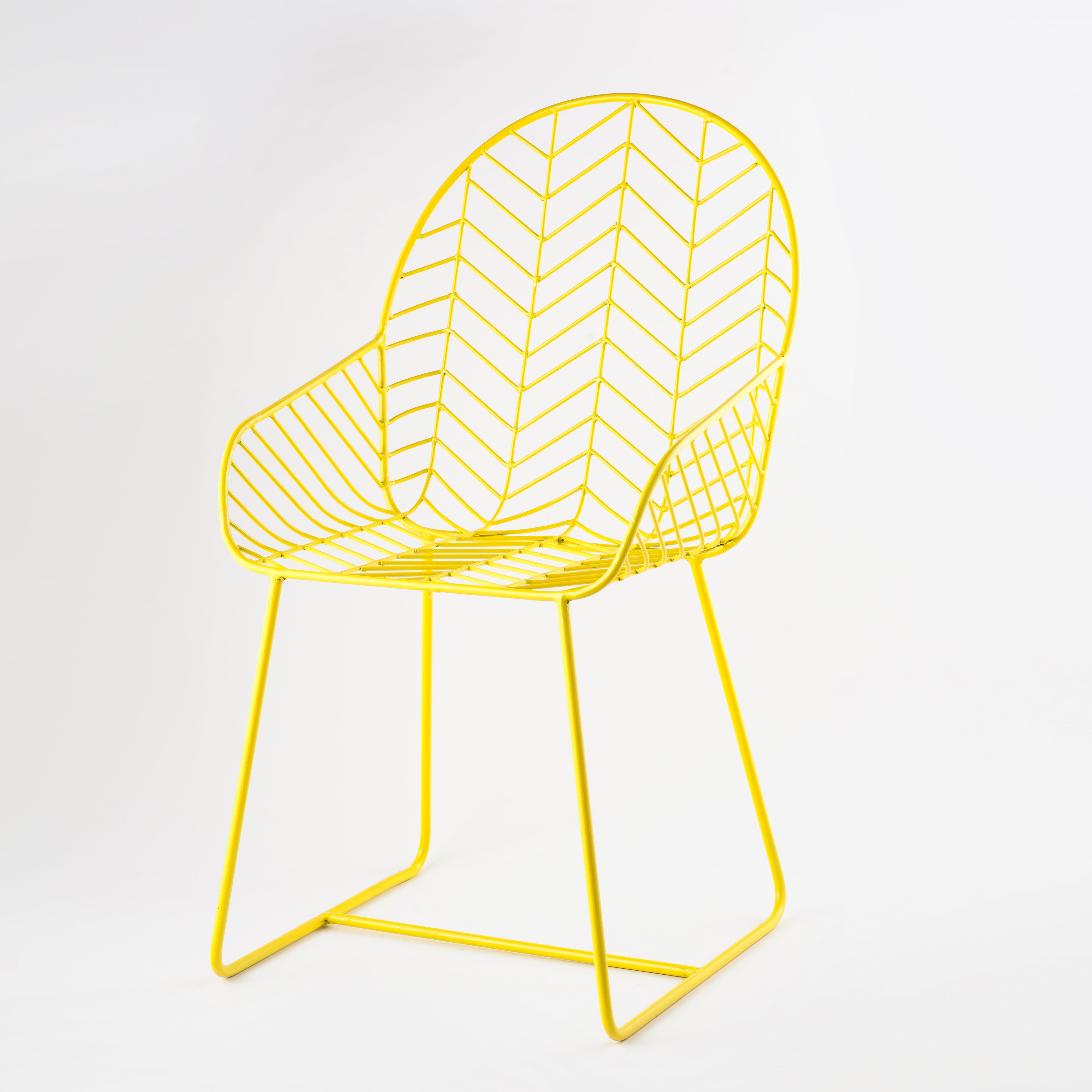 This classy iron metal wireframe chair with a yellow coating is perfect for enhancing the look and feel of your garden. Spend quality time with your friends and family with these comfortable chairs. It can also be used for working purposes and provide comfort all day long.