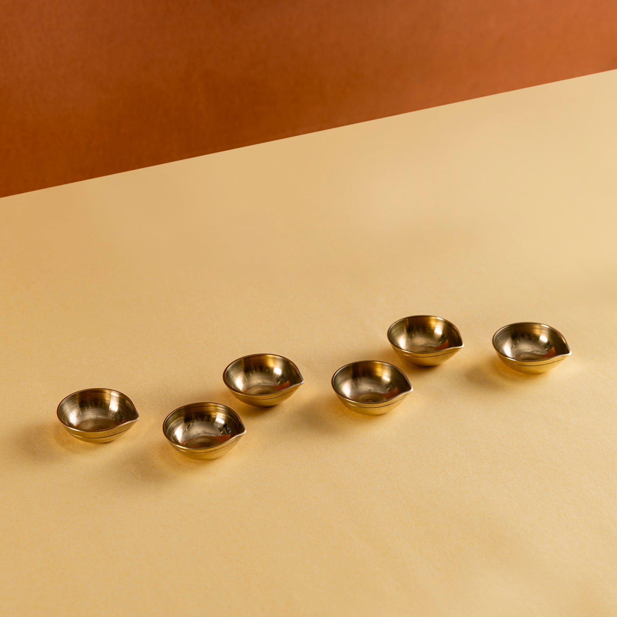 Elegant handcrafted brass diyas designed in a traditional leaf shape. Perfect for festive celebrations, rituals, and daily prayers, these diyas bring a warm golden glow that enhances the spiritual ambiance of any space. Symbolizing purity, positivity, and light, they make a timeless addition to your home décor and an auspicious choice for gifting during festivals like Diwali, Navratri, and weddings.