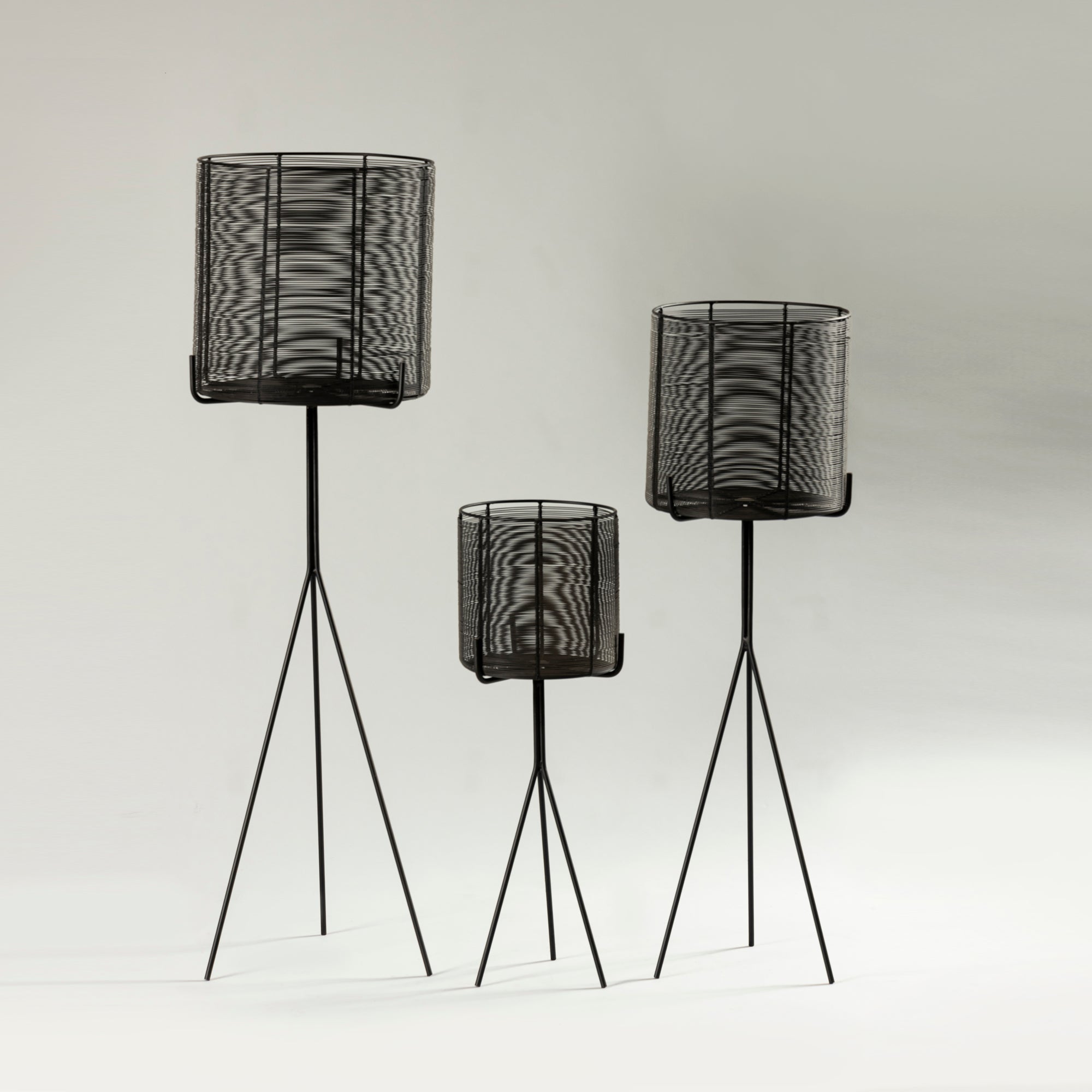 S/3 Matt black wire planters