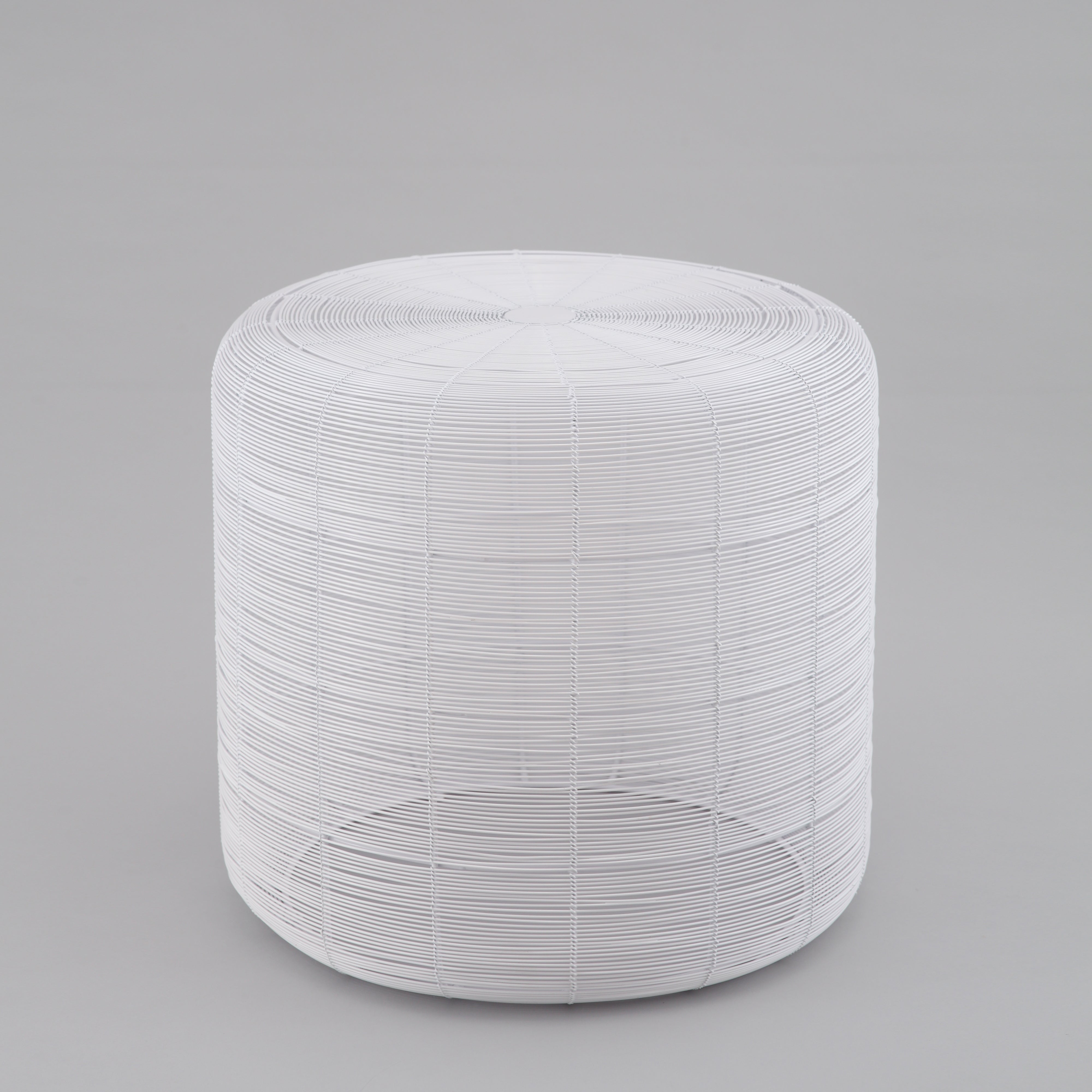 The white-colored cylindrical chic intricate mesh wireframe iron powder-coated stool is a perfect addition to your room decor. Make someone feel special by gifting this elegant and perfectly finished multipurpose stool.