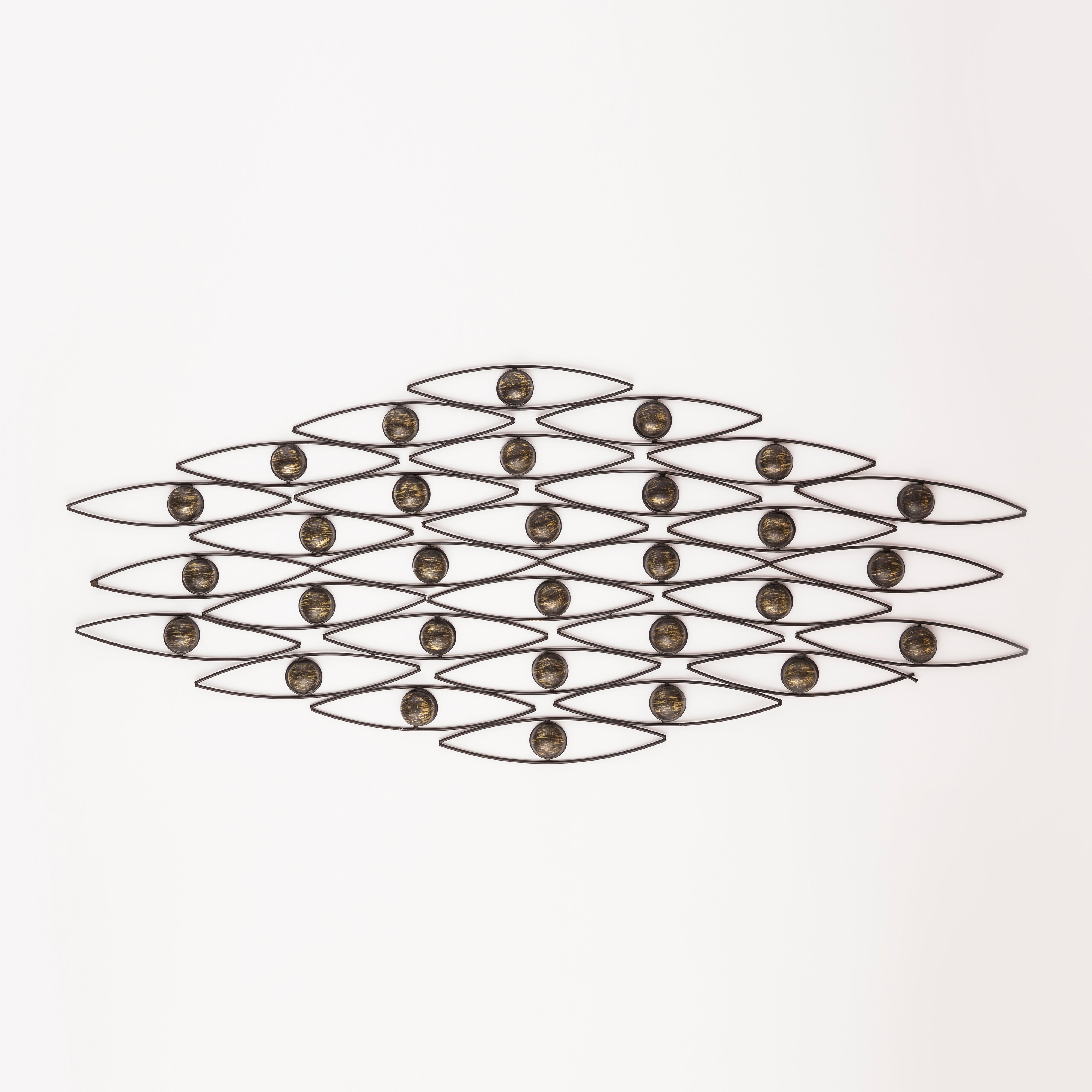 This beautifully handcrafted powder-coated iron brown metal leaf and eye-shaped wall decor will add a warm ambiance to your home or office. Easy to clean, this decorative item is bound to enhance the beauty of any wall it is hanged on. Dry-clean with a soft cloth.