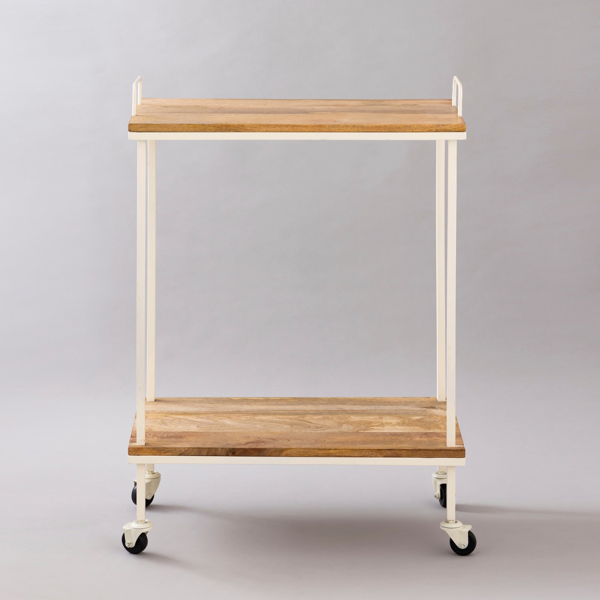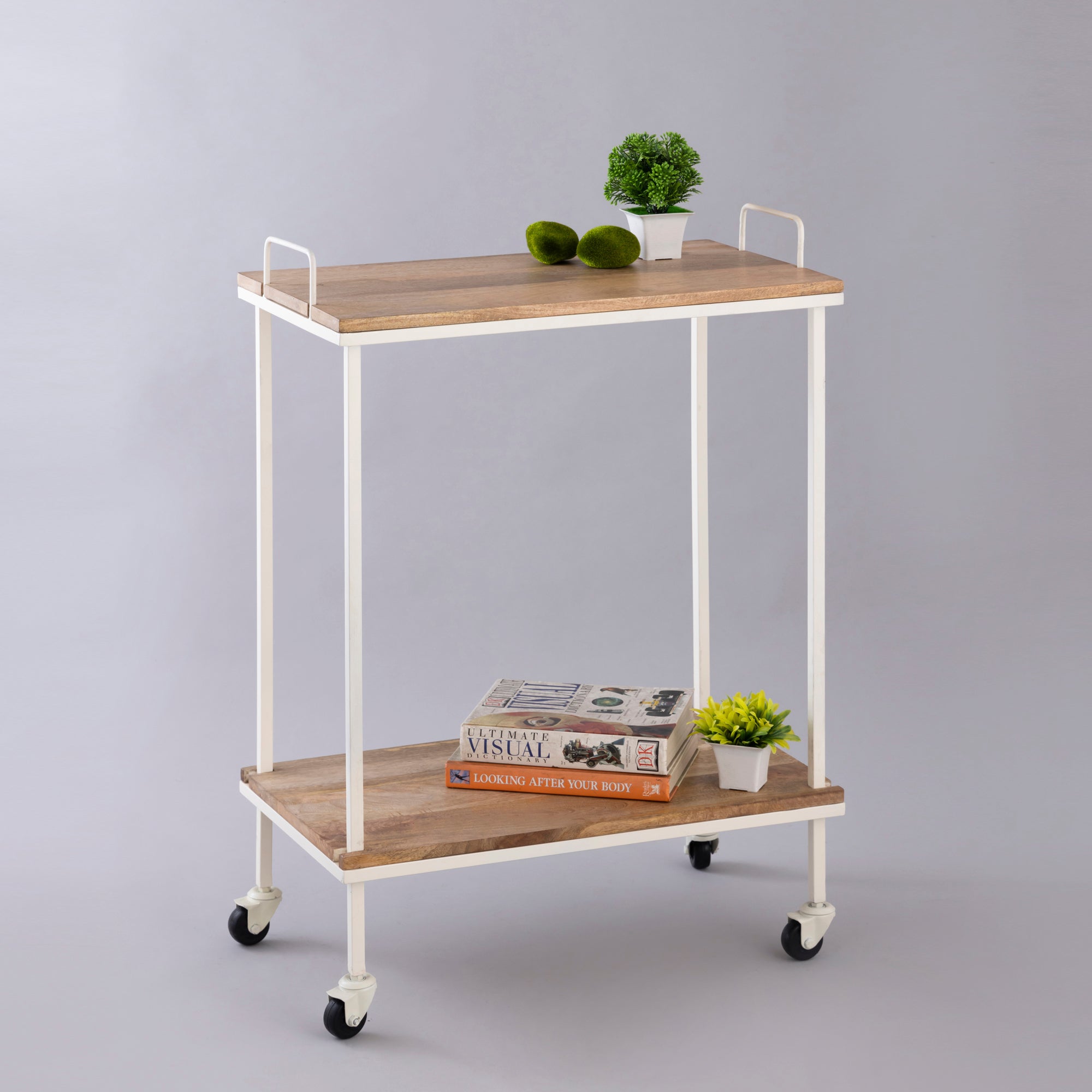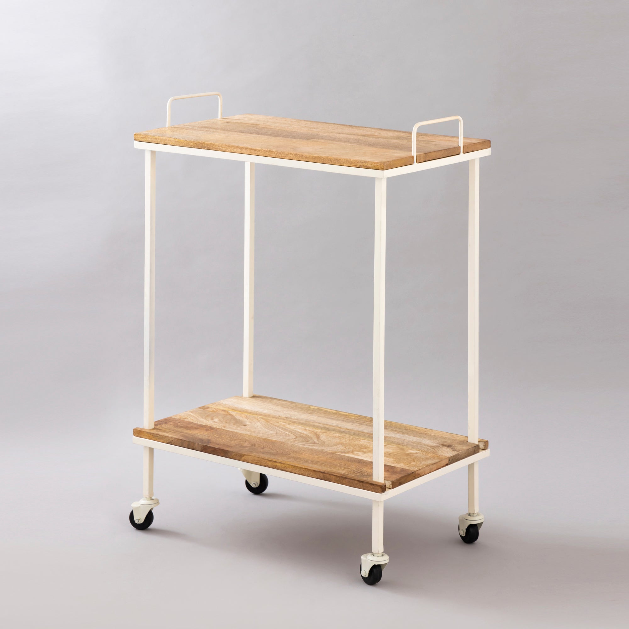 The sleek trolley is beyond utility, offering a sophisticated and contemporary look elevating the space of the overall decor. Made of natural Wood and Iron, brings a sense of natural appeal to the room. As the design and craft make it blend with utility and decorative allure, can be used and set for varied purposes.